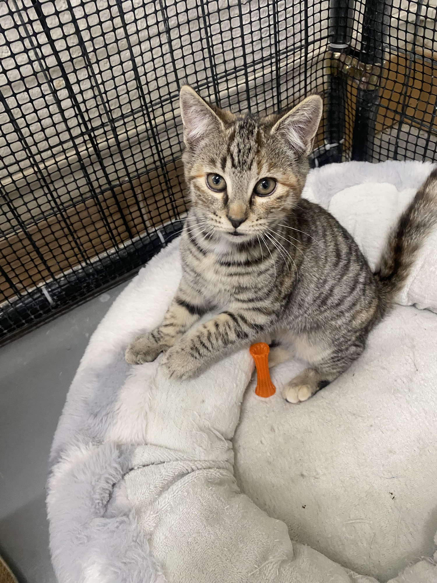 This adorable 3.5-month-old kitten is full of fun, sweetness, and love. She delights in playtime, chasing after toys, and curling up in cozy spots for a well-deserved nap. Carmen loves being around people and is always ready for a gentle cuddle or a purring snuggle. Her playful spirit makes every moment brighter, and she would be the perfect companion for anyone looking to add warmth and happiness to their home. Carmen is hoping someone will fall for her charm and make her the best Thanksgiving gift ever—a forever home filled with joy.