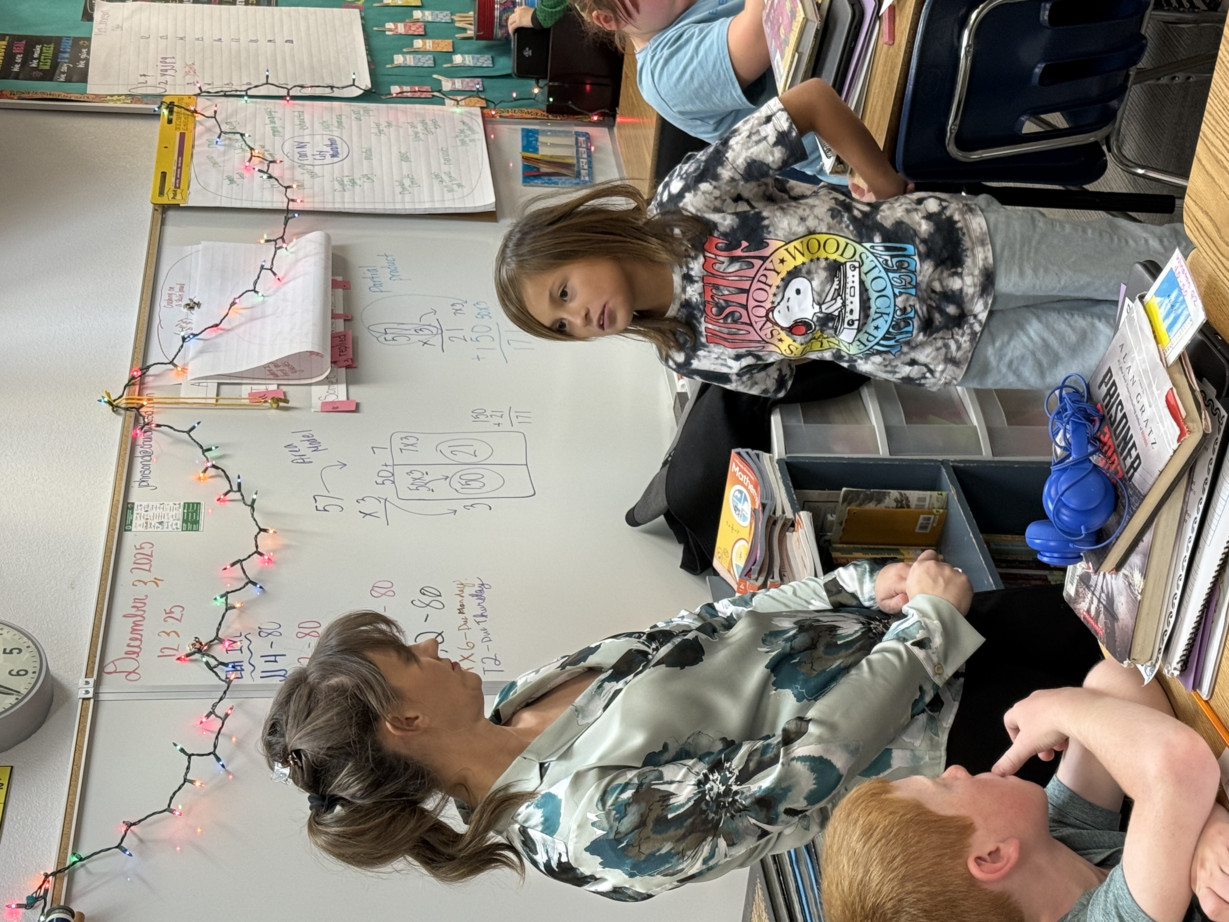 Tracy Wagner’s second graders have been learning about arrays as a foundation for multiplication. Students drew arrays in chalk and wrote repeated-addition sentences along with matching multiplication equations. This hands-on approach helped students see how numbers can be organized visually to understand multiplication.