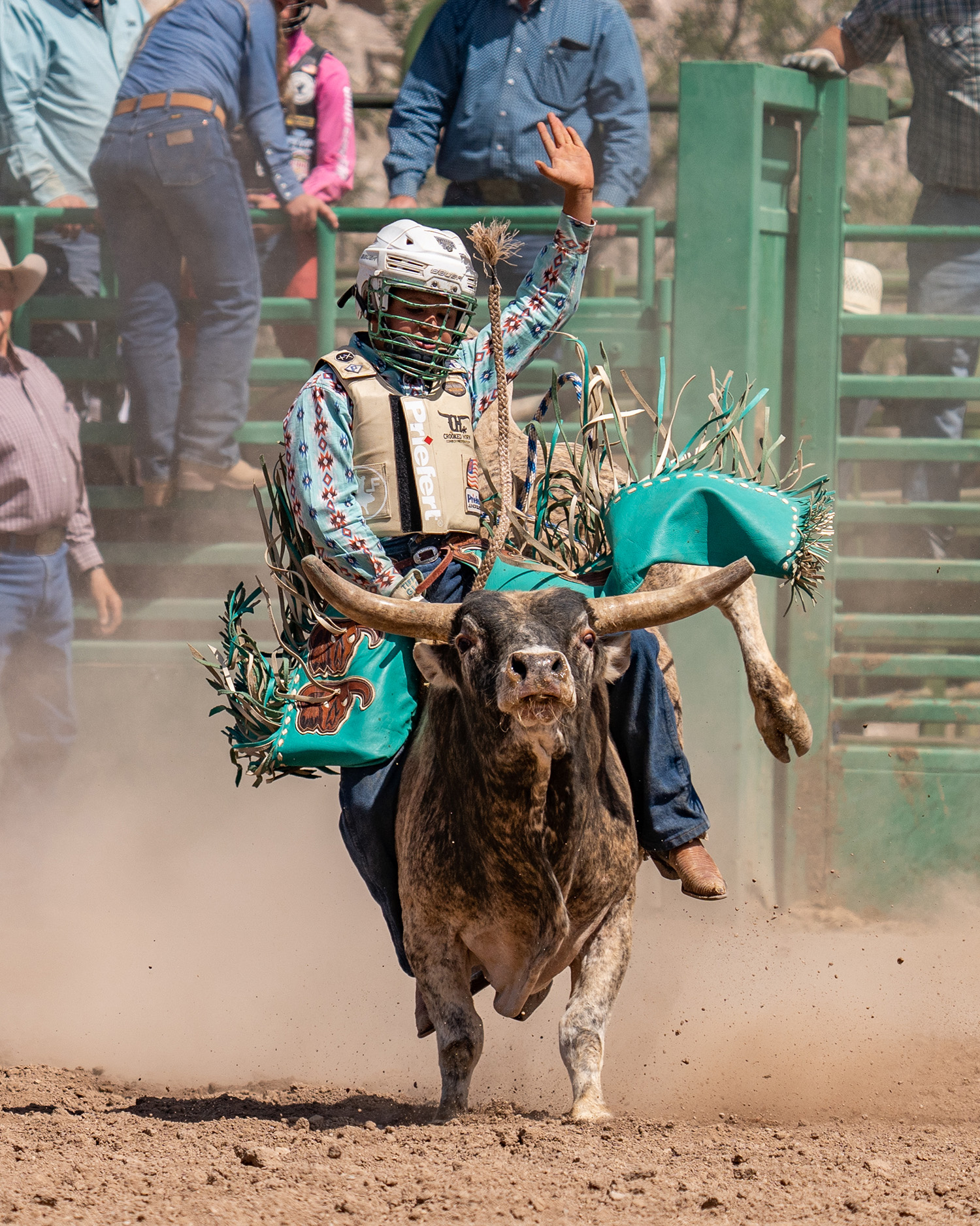 In Rostin’s current age bracket, competitors ride mini bulls, which are bred to be much smaller and less aggressive than bulls used in high school, college, amateur, and pro circuits. In the 2025 Nevada High School Rodeo Finals, Junior Division, Rostin ended the 2024-2025 season with second place in the bull riding. At the 2025 Great Basin Bull Sale ranch rough stock junior performance, Rostin gave the audience a winning ride, taking first place. At the last three New Year’s Eve Top Gun Invitational Xtreme Bull Riding, Rostin was part of the junior bull riding performance, hitting the arena alongside top-notch professional bull riders like T.J. Gray, Scott Wells, Wade Tuni, and Colten Fritzen.