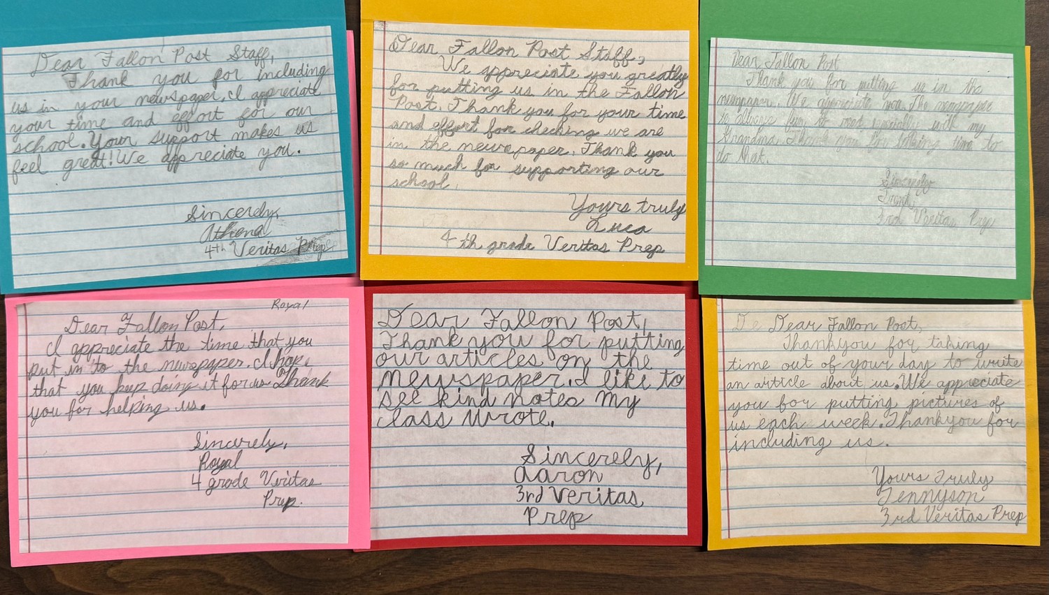 Gretchen Felte's third- and fourth-grade students presented reporter Sydney Trainor with thank-you notes when she visited the school to cover a story. Students express gratitude to The Post for covering their activities each week.