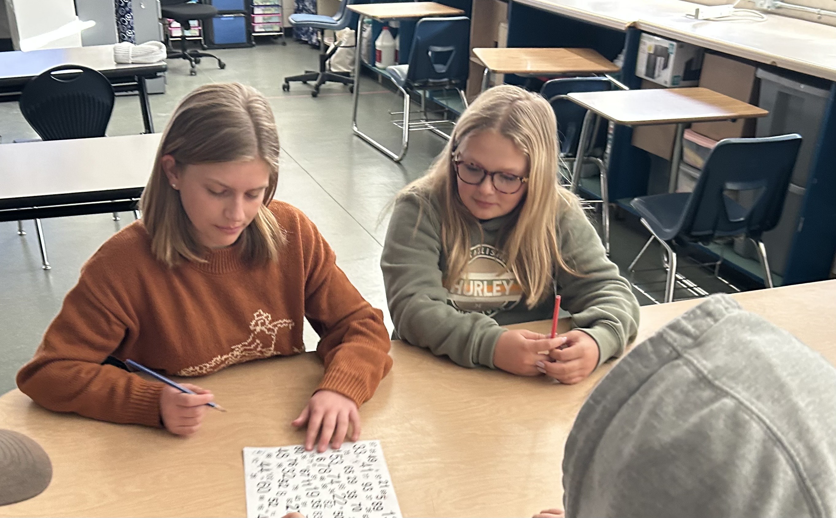 Last week, students returned from Winter Break ready to learn and engage in meaningful classroom experiences. In Justin Chambers’ health class, students explored the risks and dangers of alcohol use. Through class discussions and presentations, they examined topics such as addiction and its impact on health and decision-making, building awareness to support informed choices. Meanwhile, in Rebecca Hatch’s Career and Technology Exploration class, students worked on workplace communication and conflict resolution skills by playing Silent Bell (passing a bell without making a noise), 100 Numbers (working together to circle numbers to 100), and Quick Draw (without talking, students worked together controlling a pen with strings to draw different shapes and pictures). With a strong start to the new year, CCMS looks forward to the continued learning and growth students will experience throughout the rest of the school year. Photo: Rylee Hammond and Hannah Keyes play games to build workplace communication and conflict resolution skills.