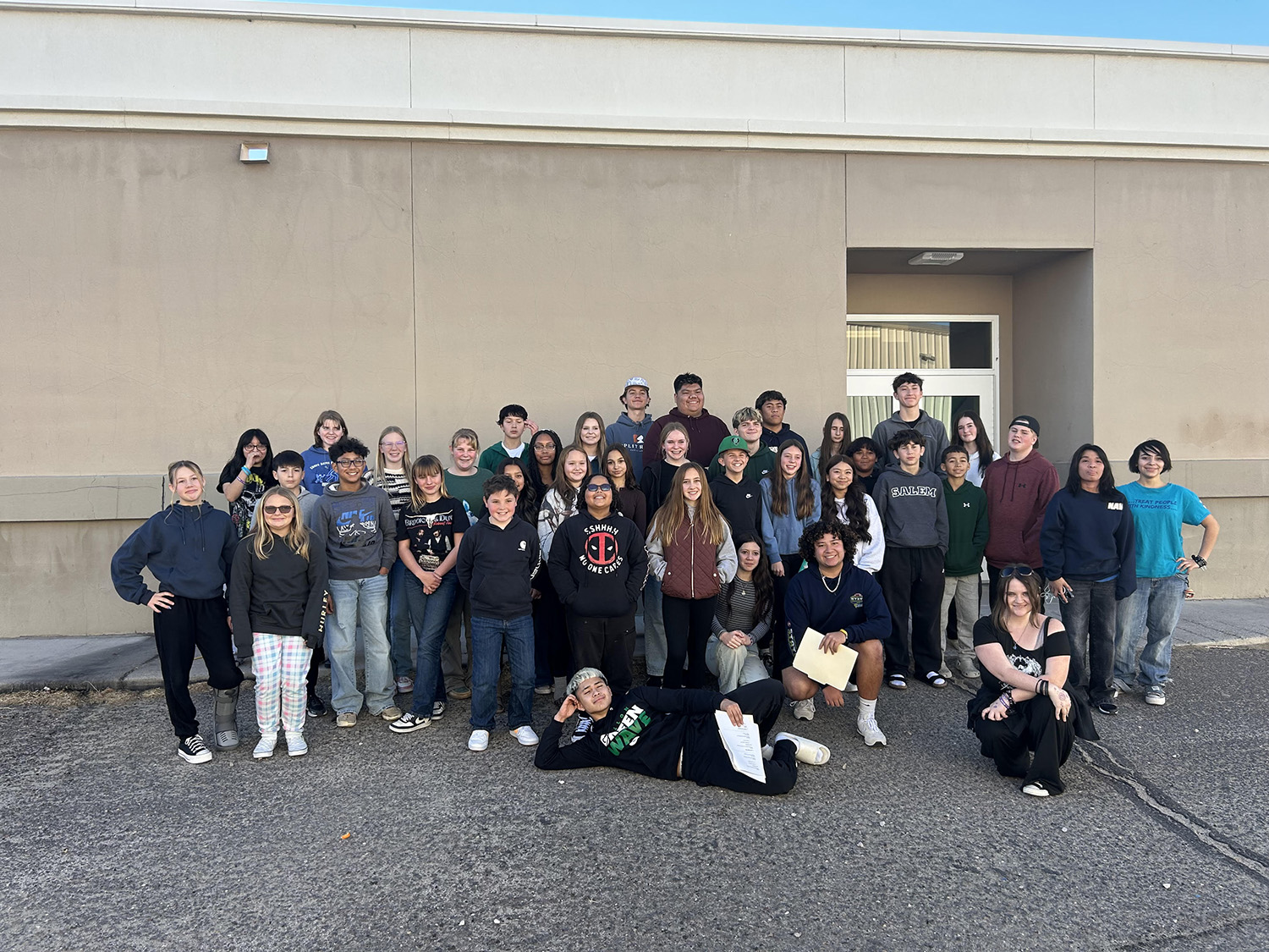 Photo below: Members of the Churchill County Middle School and Churchill County High School Hope Squads pose for a group photo following a joint collaboration session at Gerka café.