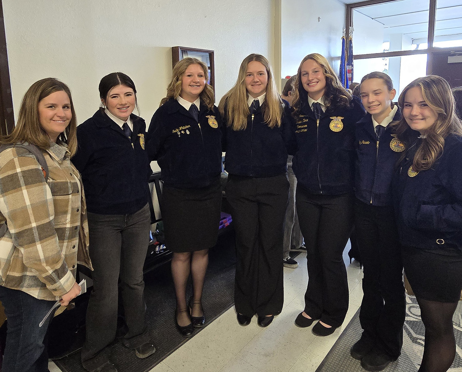 Finally, in the milk evaluation competition, Sadie Whitaker placed second individually, Taylor Sowersby placed third individually in Vet Med, and the Oasis floriculture team earned second place overall. Photo:From left: Jenna Whitaker, Katie Varain, Sadie Whitaker, Kinsley Viera, Taylor Sowersby, Bailey Peixoto, and Brooke Manskie.