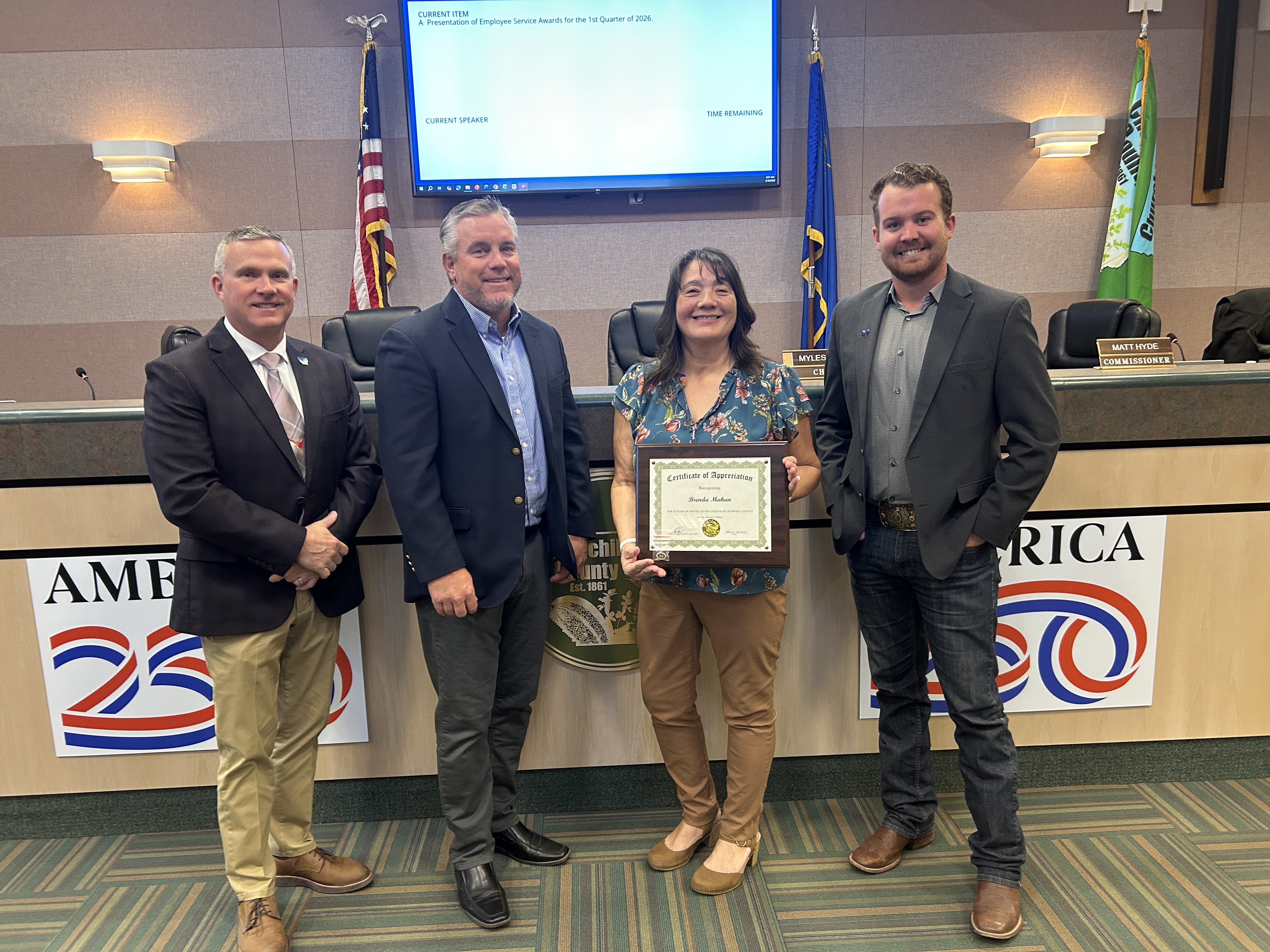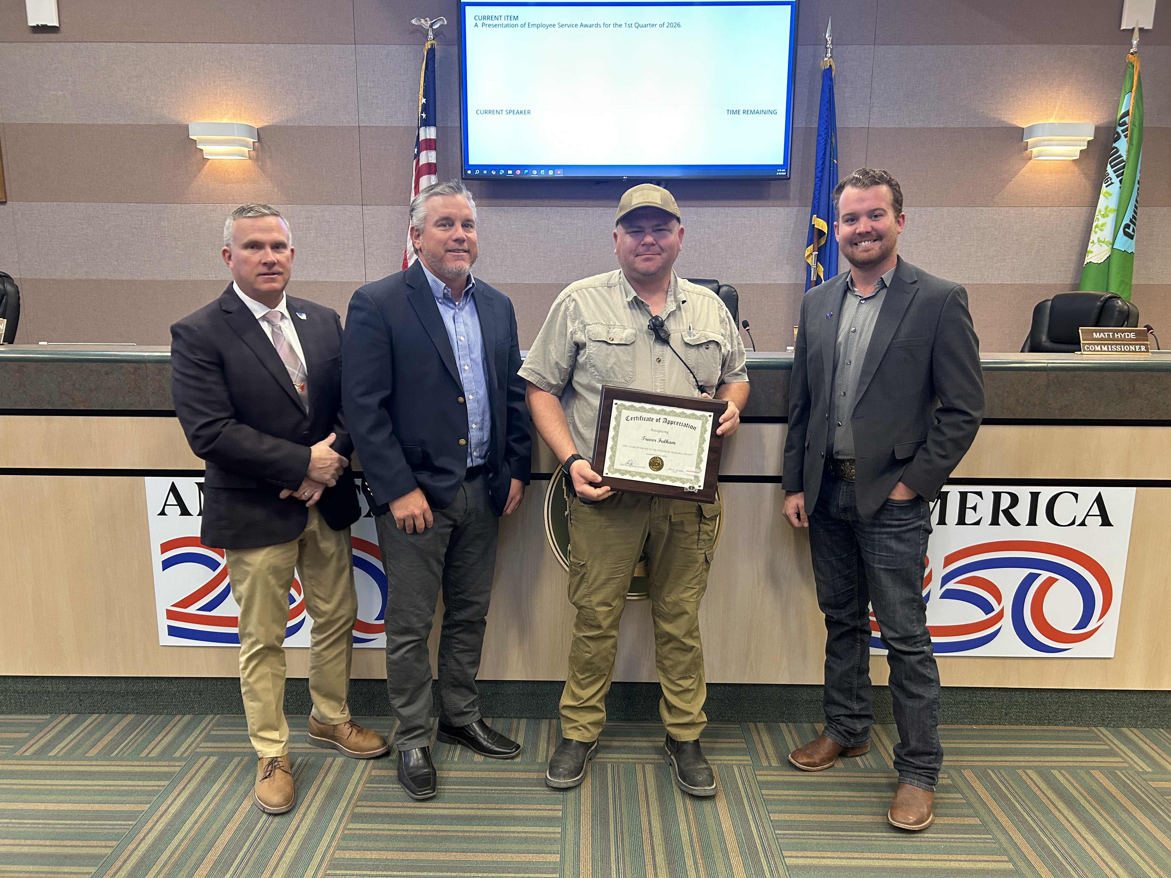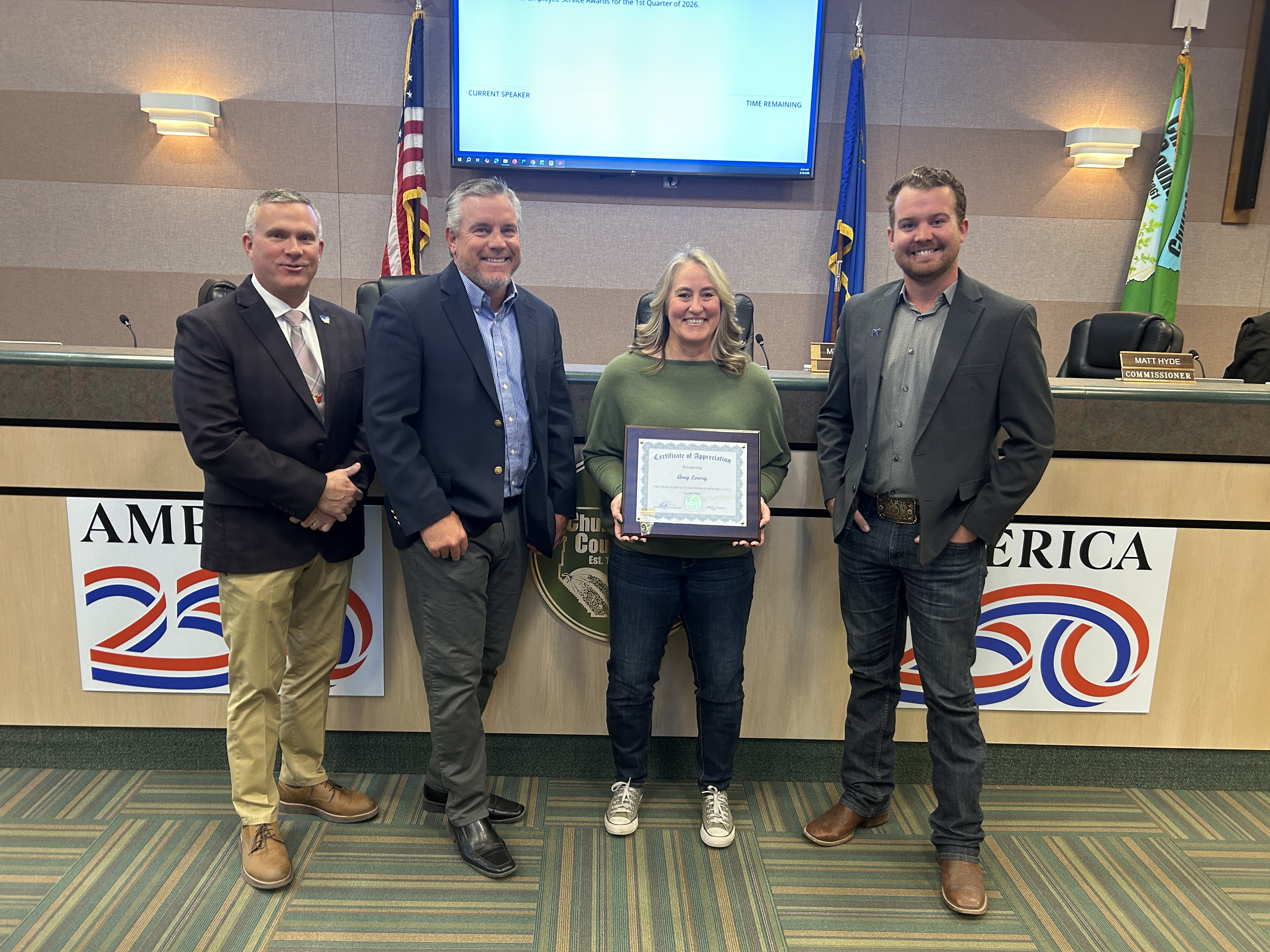 During the March 18 meeting, the Churchill County Board of County Commissioners honored eight employees for their collective 110 years of dedicated service.