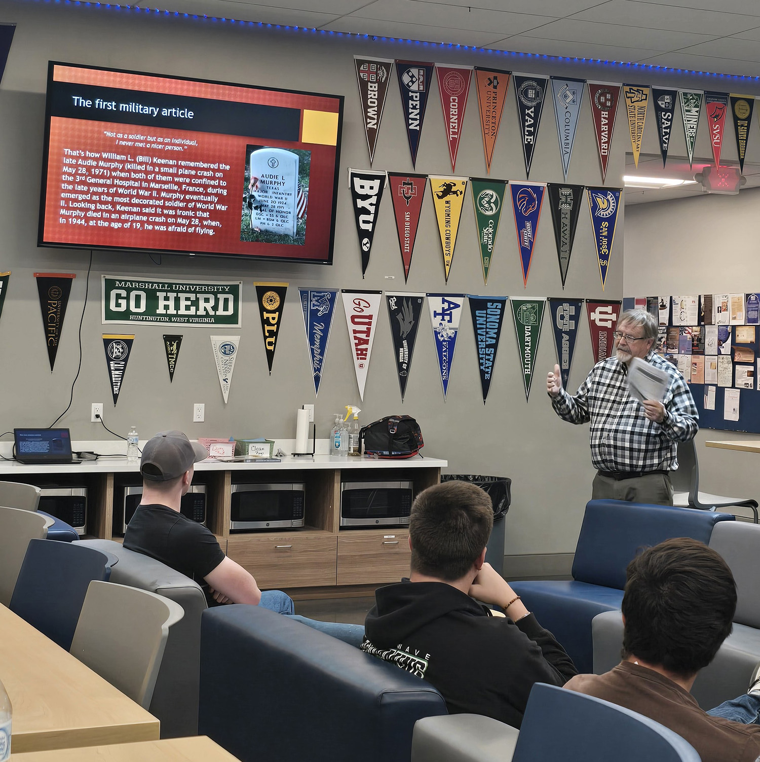 Ranson provided students with an overview of the war, but focused much of his presentation on three Nevada servicemen who were killed during the attack. The men—Eugene Gill of Wells, Richard Walter Weaver of Reno, and Eric Young of Fallon—served as powerful reminders of the state’s personal connection to a pivotal moment in American history.