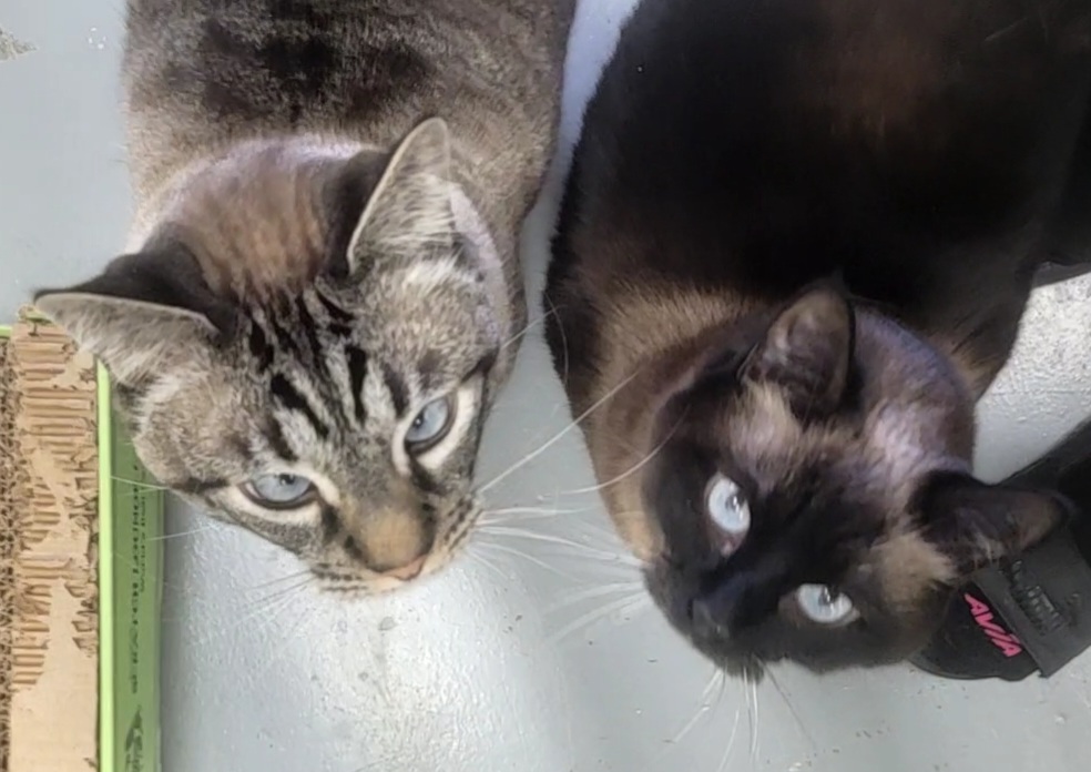 This loving brother‑and‑sister duo are about 5 years old. Molly has a beautiful Burmese coat, and Max has a handsome lynx‑point coat. They’re both fixed, vaccinated, microchipped, and ready to go home.